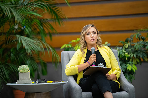En esta ocasión la encargada de dar la bienvenida a las y los participantes fue Catalina Morfín, titular de la Dirección General Académica del ITESO, quien recordó que la vocación de los foros y el interés del ITESO con ellos es "fortalecer la vida democrática y ofrecer espacios y momentos para la reflexión y el diálogo".